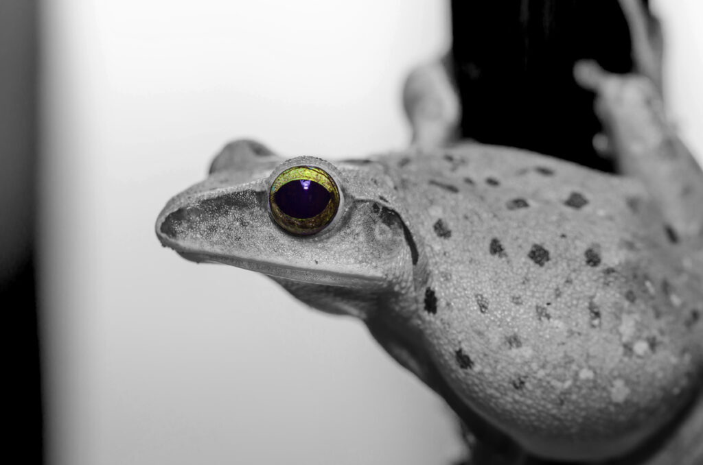 Jeg gjorde hele billedet sort/hvid, men lod frøens øje forblive i farve. Derefter justerede jeg øjets rødlige tone og fremhævede detaljerne, så det fik en tydelig kontrast og blev blikfang på forsiden. - Slangehovedet:
